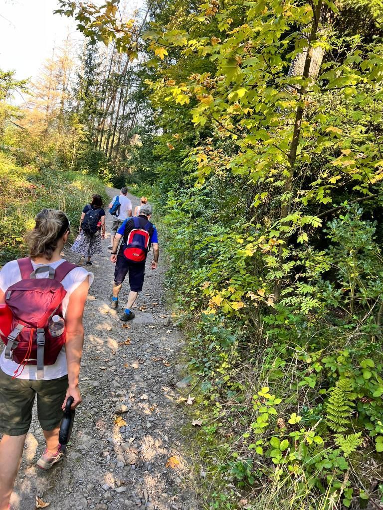 Mit 20 Erwachsenen, drei Kindern und sechs Hunden starteten wir um 10.00 Uhr am Freibad Henkhausen.